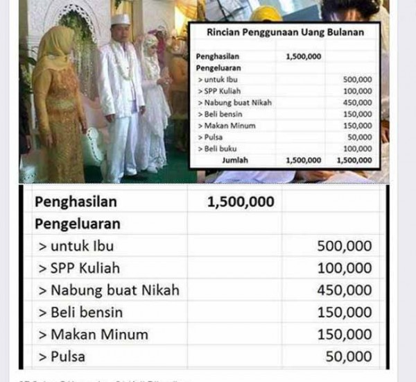 Ridwan yang bergaji sangat kecil Rp 1,5 juta perbulan benar-benar punya ilmu manajemen yang tangkas. Ia tetap menargetkan menikah di usia 27.