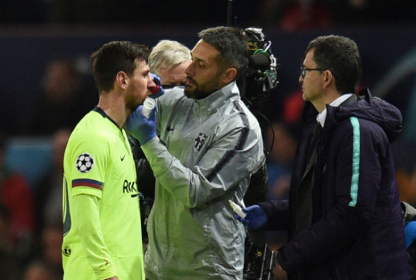 Messi sempat mengalami pendarahan di bagian hidung serta lebam di mata, akibat hantaman keras dari Chris Smalling pas menit ke-28 pertandingan. Alhasil tim dokter harus ngeliat dulu gimana kondisi Messi setelah mengalami kecelakaan berdarah tersebut.