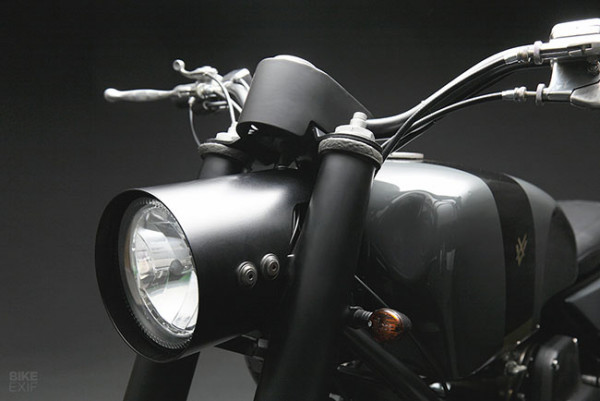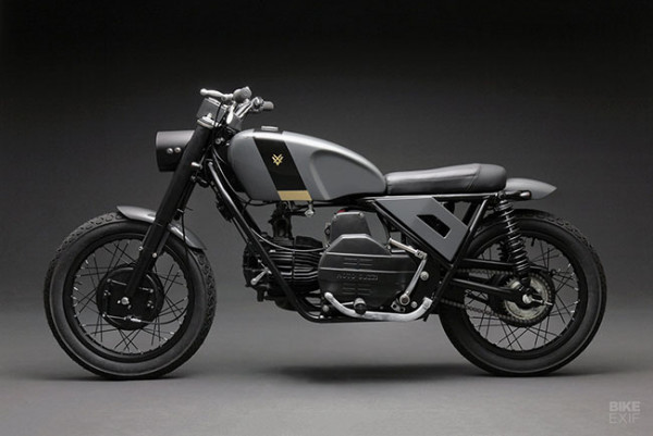 Dengan gaya Venier yang khas, Guzzi dicat ulang dengan warna monokrom rapi hanya dengan sedikit warna gold.