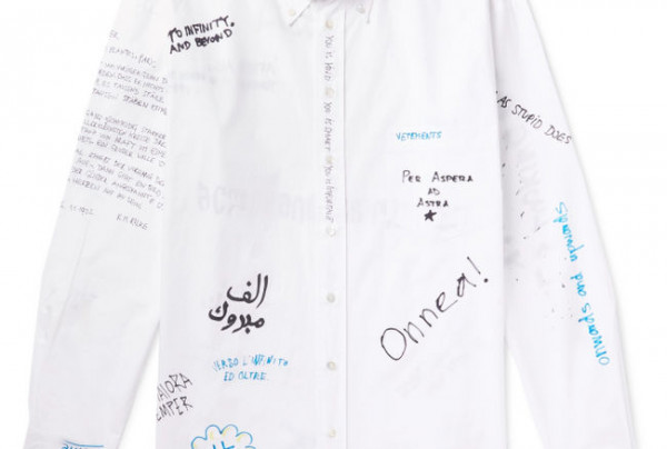 Salah satu brand fashion asal Prancis, Vetements menghadirkan sebuah kemeja yang punya tampilan unik dan gak biasa. Brand tersebut bikin kemeja putih dengan aksen corat-coret seperti menggunakan tinta spidol.