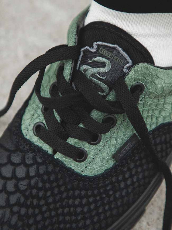 Sementara untuk edisi Slytherin, Vans menggunakan siluet Era. Menggabungkan hanya dua warna namun terasa banget Slytherin-nya yaitu hitam dan hijau. Meski warna emas tampak absen, namun tak mengurangi identitas asrama Draco Malfoy ini.